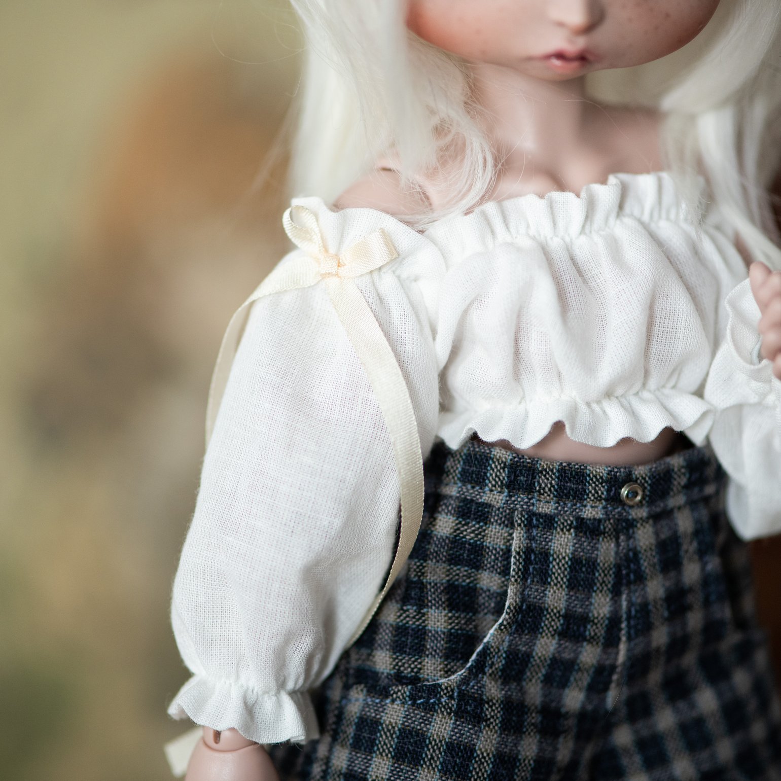 White "Mona" top for Teacup Marionette BJD.
